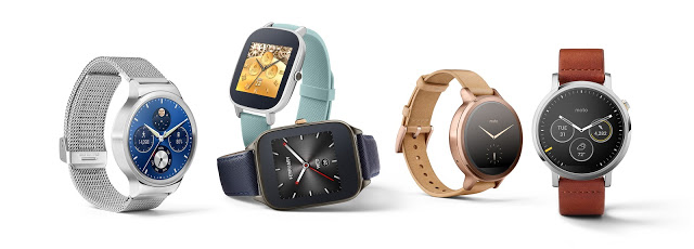 Huawei Watch (left), Asus ZenWatch 2 (centre), Moto 360 (right) (Official Google Blog, 2015)